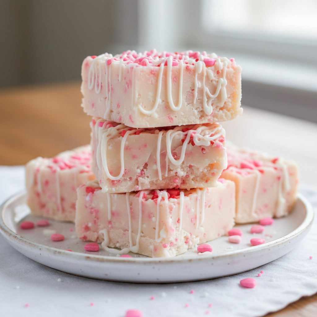 Unlike traditional sugar cookies or plain fudge, this recipe combines the best qualities of both: the buttery vanilla notes and soft texture of sugar cookies with the rich, creamy consistency of fudge. Enhanced with cheerful Valentine’s-themed sprinkles, it’s as beautiful as it is delicious — perfect for gifts, parties, or just a cozy night in.